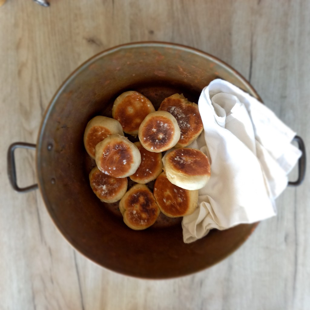 Mój ulubiony przepis na leniwą niedzielę, kiedy jest wystarczająco dużo czasu, żeby pozwolić drożdżom czynić magię. Do ich wypieku nie potrzeba piekarnika, wystarczy zwykła patelnia z pokrywką. Są puszyste jak małe kaczuszki i smakują dobrze nawet następnego dnia. Mam nawet krótką historie miłosną na potwierdzenie ich wspaniałości; otóż gdy kiedyś po rozstaniu z partnerem życzyłam mu szczęścia. On odparł, że dobrym początkiem byłoby udostępnienie mu tego przepisu. Nie wiem, czy bułki go uszczęśliwiły, ale na pewno nadal są równie pyszne. Jest to zweganizowana receptura zaczerpnięta ze strony Justyny Dragan.